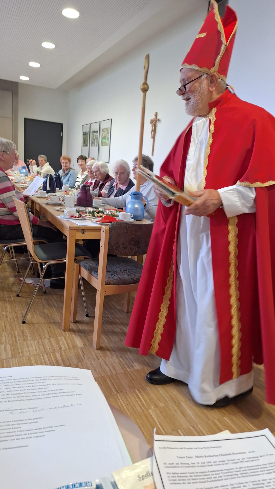 Und so kam der Nikolaus auch persönlich zu uns und hatte viele gute Worten mitgebracht. Vielen Dank dafür an unseren Diakon Johannes Hartmann!