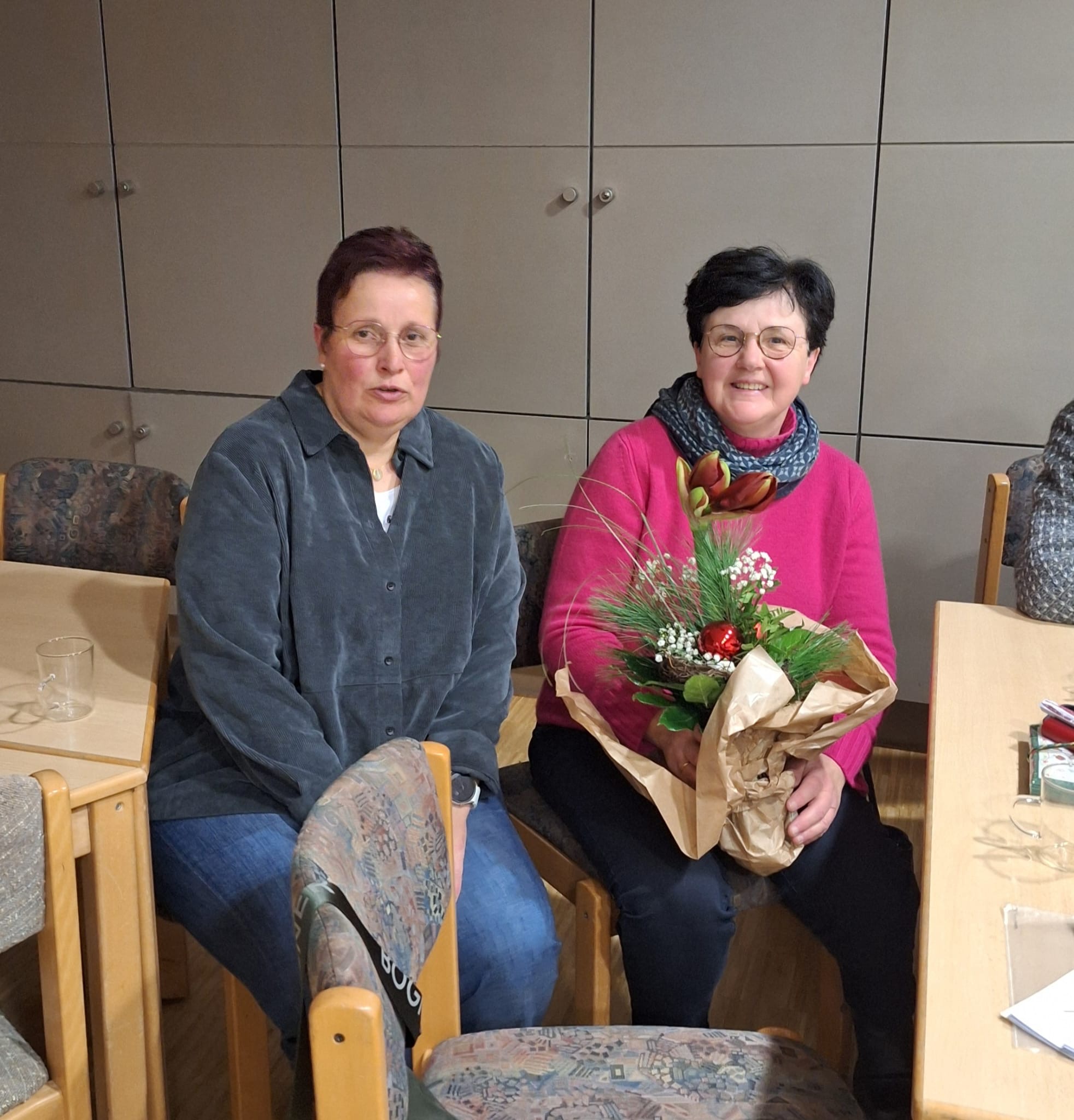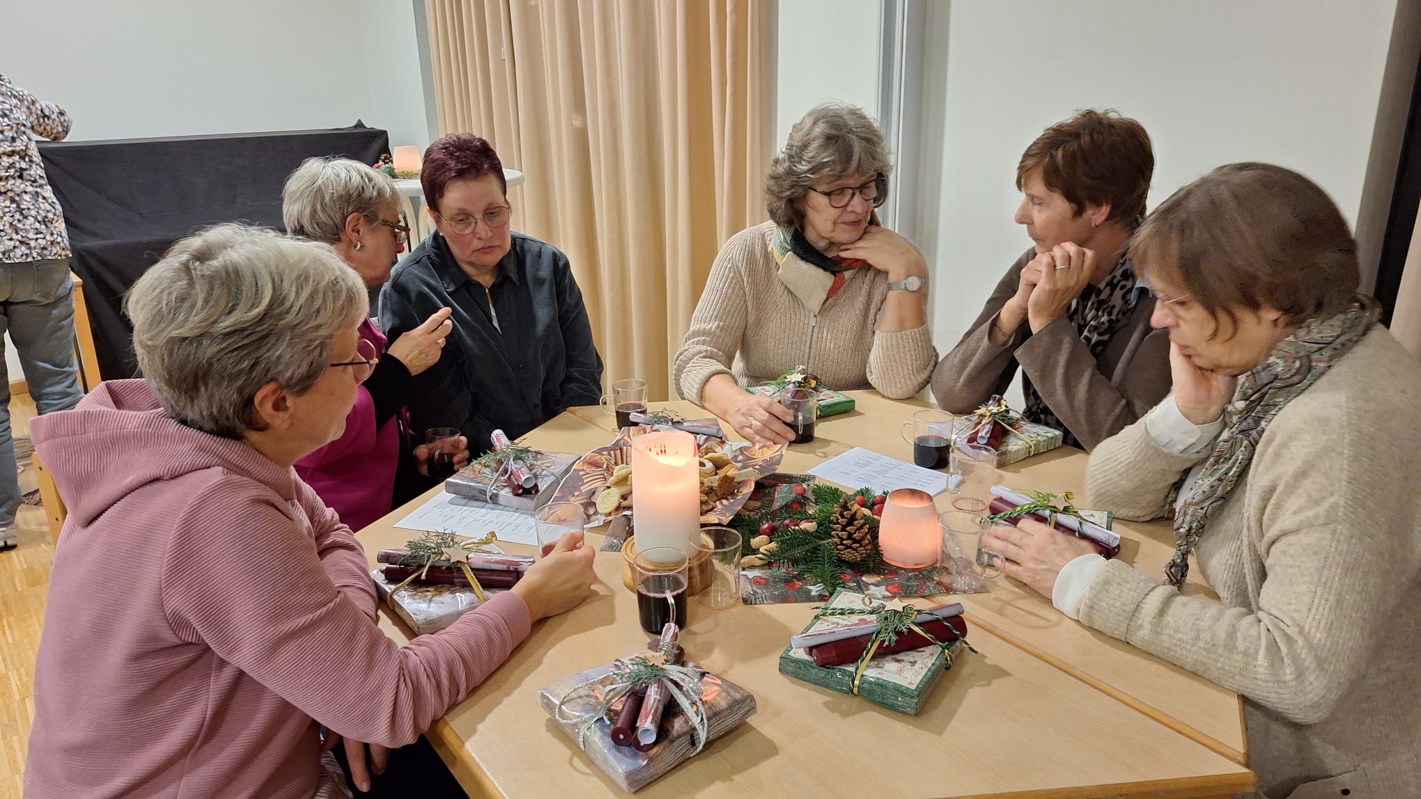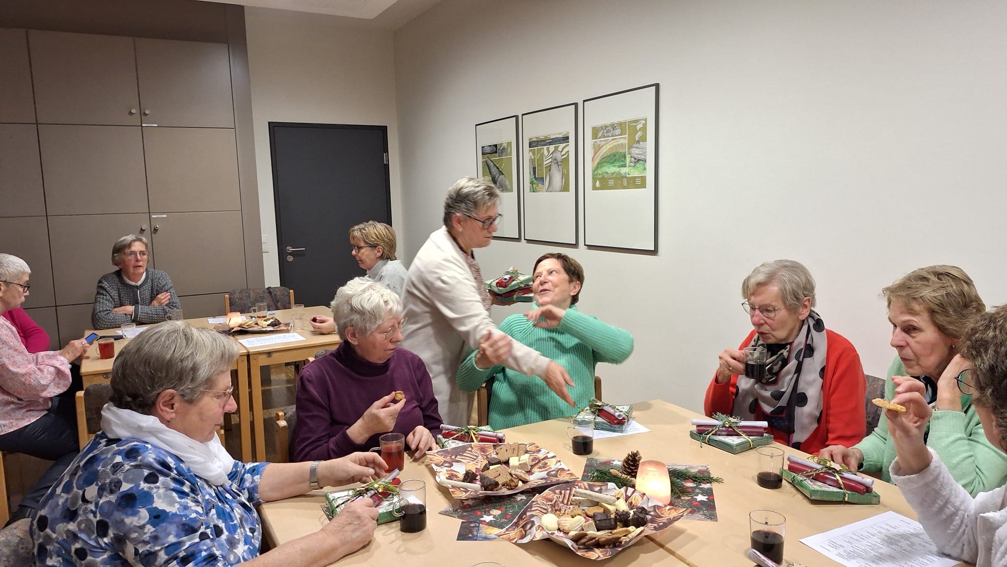 Nach der Messe fand eine kurze Mitarbeiterinnen-Runde in der Arche statt, die mit einer Adventsfeier verbunden war. Der Vorstand würdigte die engagierte Unterstützung der Mitarbeiterinnen mit einem kleinen Dankeschön, besonders für die Verbindung zu den Mitgliedern.