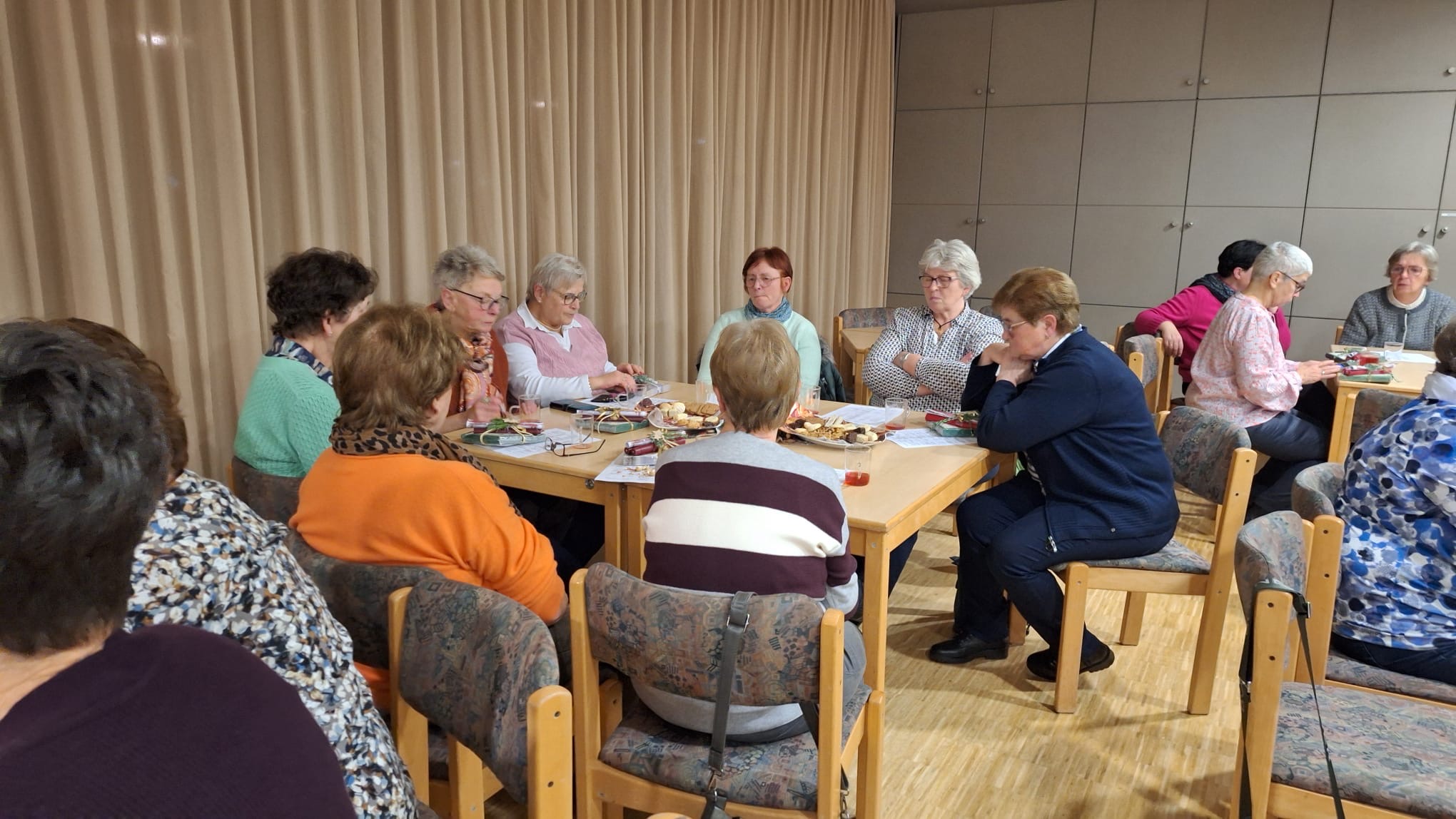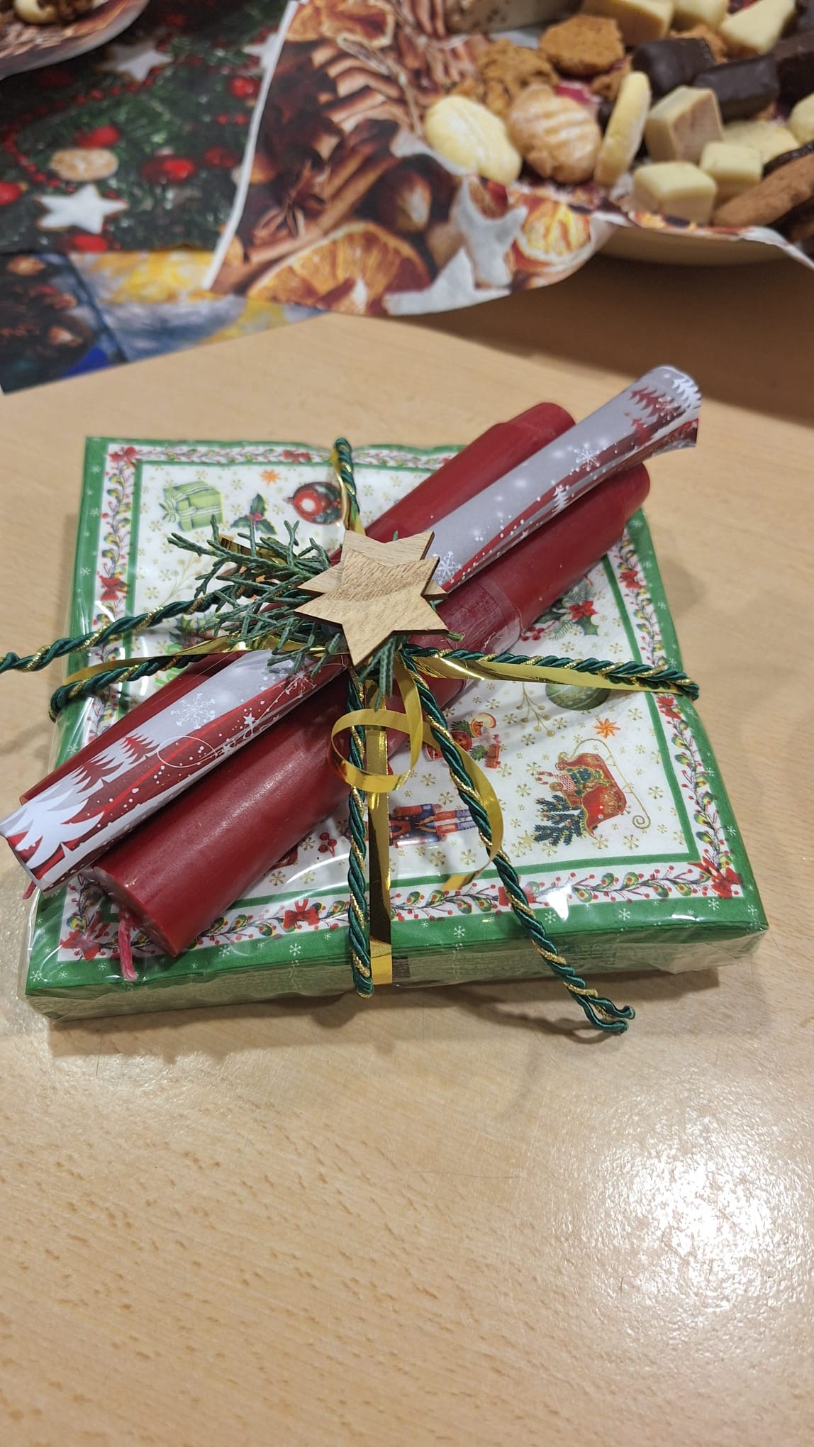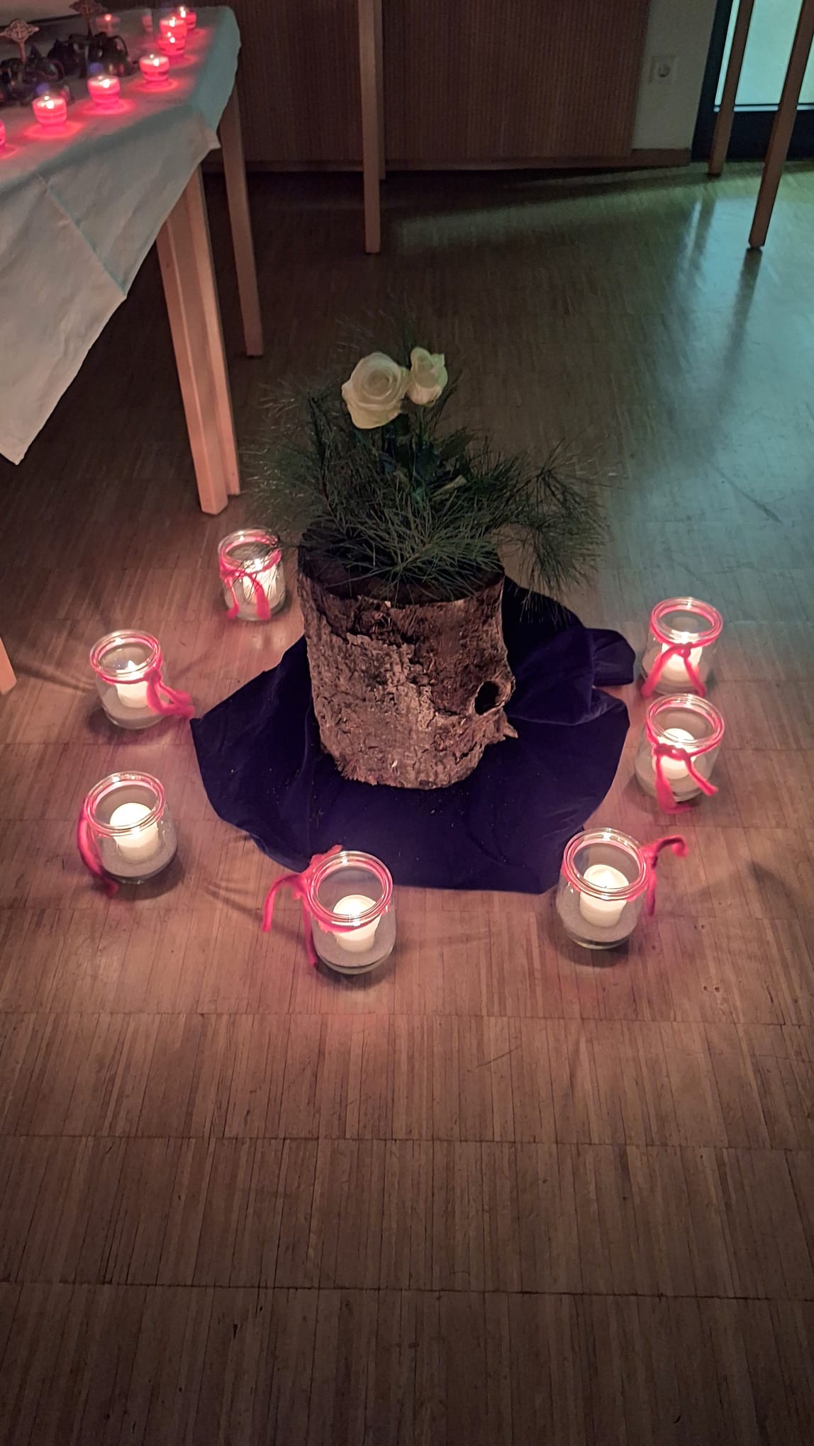 Nach der Messe fand eine kurze Mitarbeiterinnen-Runde in der Arche statt, die mit einer Adventsfeier verbunden war. Der Vorstand würdigte die engagierte Unterstützung der Mitarbeiterinnen mit einem kleinen Dankeschön, besonders für die Verbindung zu den Mitgliedern.