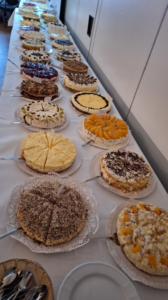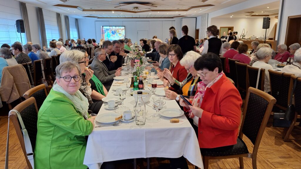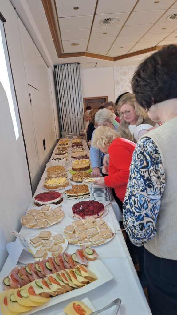 Als Überraschungsgast kam Hildegard Brömmelstrote im perfekten Bayern-Look und Dutt auf dem Kopf, mit auffälliger Hornbrille und Handtasche hereinspaziert und sorgte mit ihren spritzig-bissigen Reden mit vielen Pointen für herzhafte Lacher. Mit Musik und Gesang hat Julia Scharnhorst den Tag begleitet. Zum Abschluss des Tages gab es ein Kuchenbuffet mit köstlichen selbstgebackenen Torten von den einzelnen Gruppen.