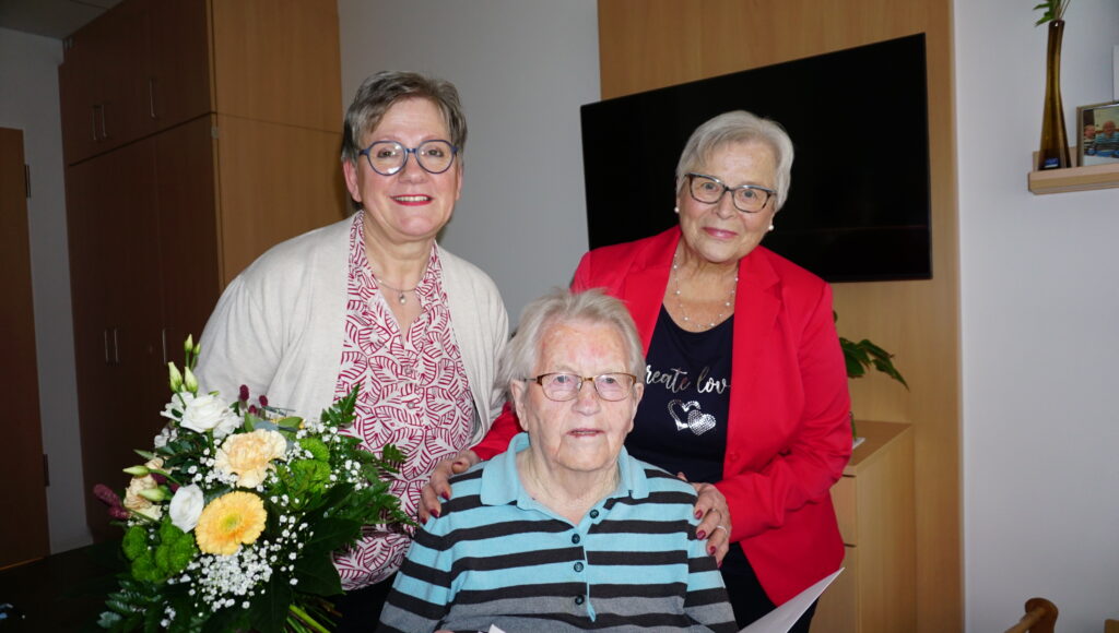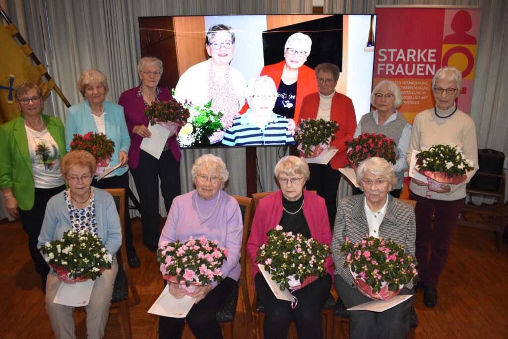 Ein große Freude war es Emma Thale, das älteste Mitglied, für 78 Jahre Mitgliedschaft zu ehren. Sie war schon vorher im Mütterverein und ist das einzige Mitglied, dass bei der Gründung bereits dabei war. Für 60 und 50 Jahre Mitgliedschaft wurden 16 Jubilarinnen mit einem Blumengruß geehrt werden. Bei den Mitarbeiterinnen gab es Ehrungen für 40, 30 und 25 Jahren aktive Mitarbeit in der kfd.